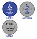 BEA 10PBS45POD Push Plate,S/S,4.5"" Sq,Text, Press To Operate Door